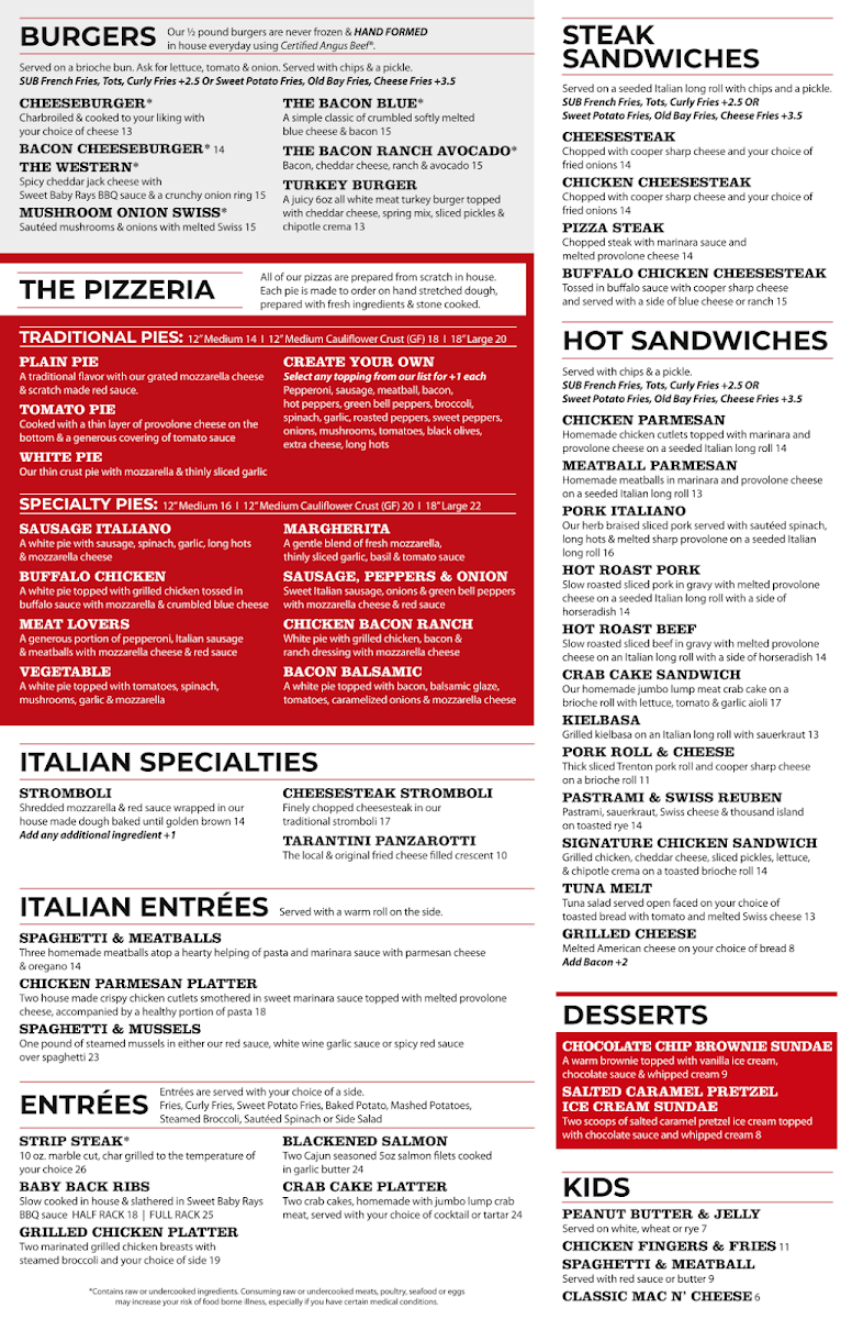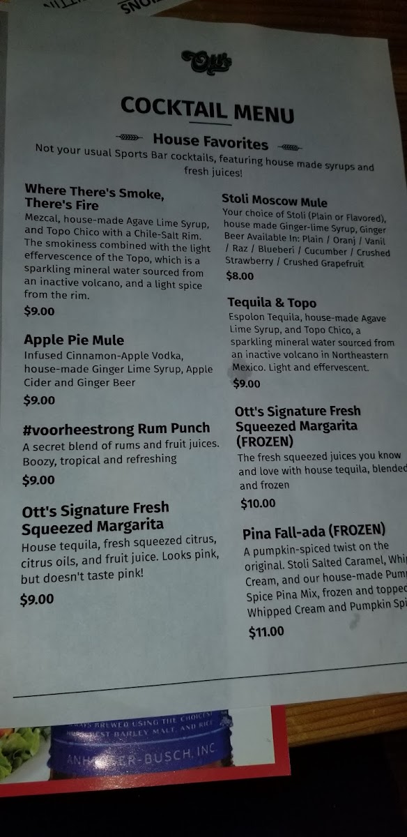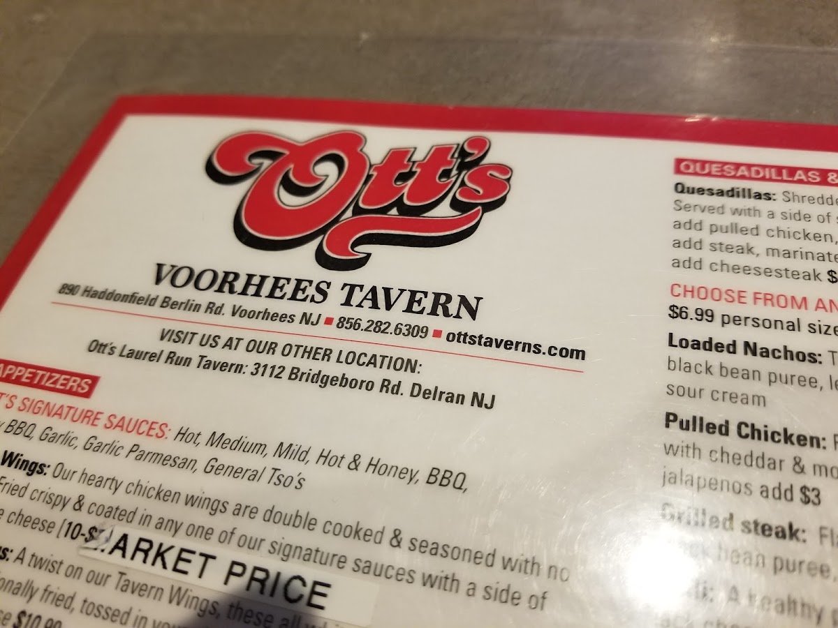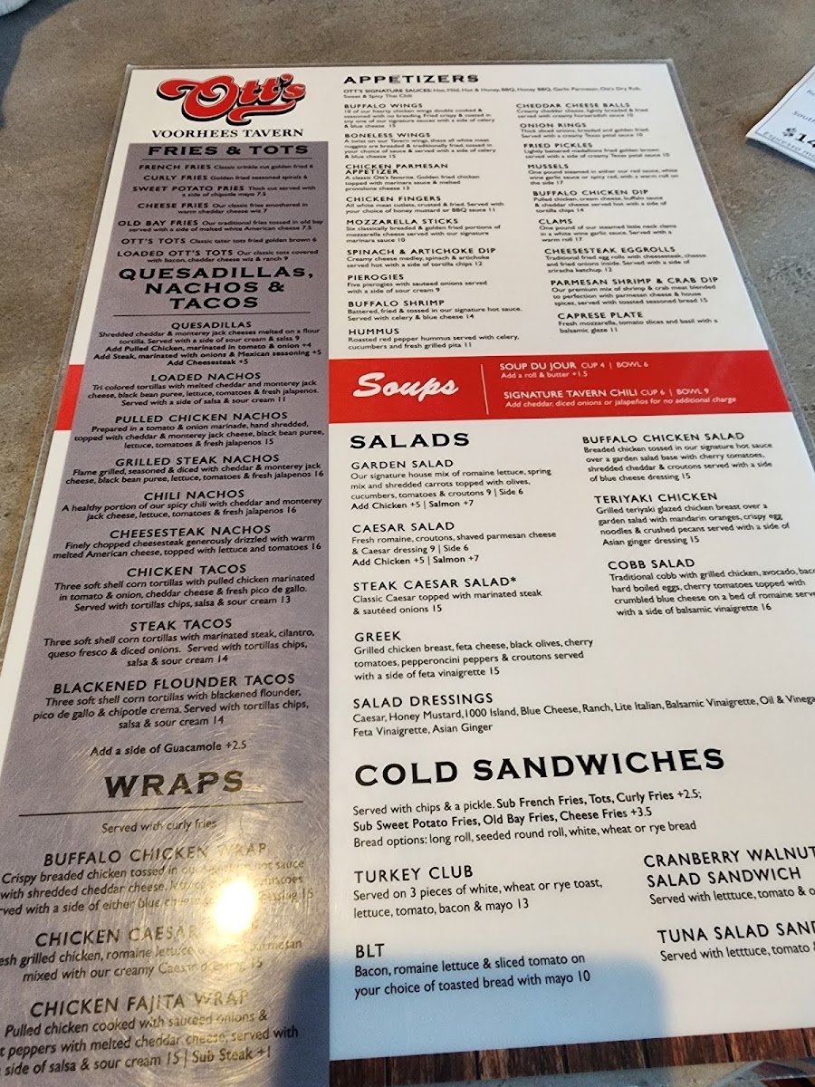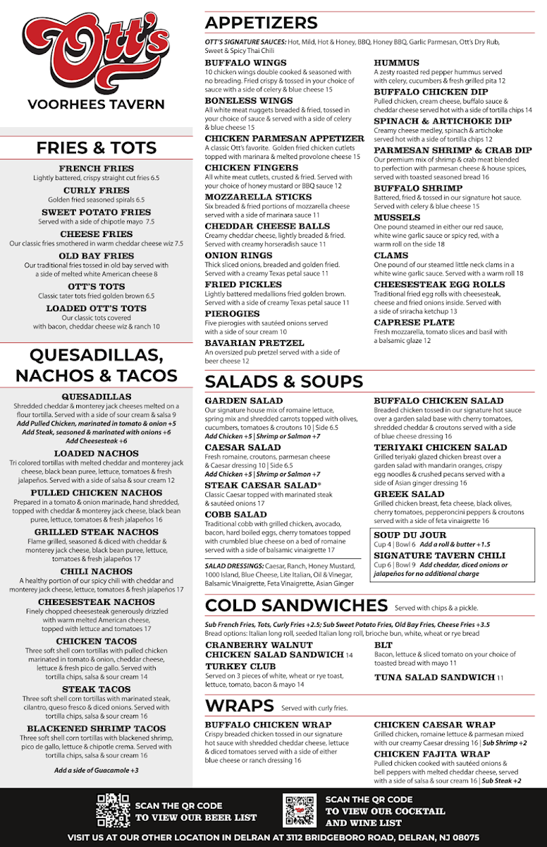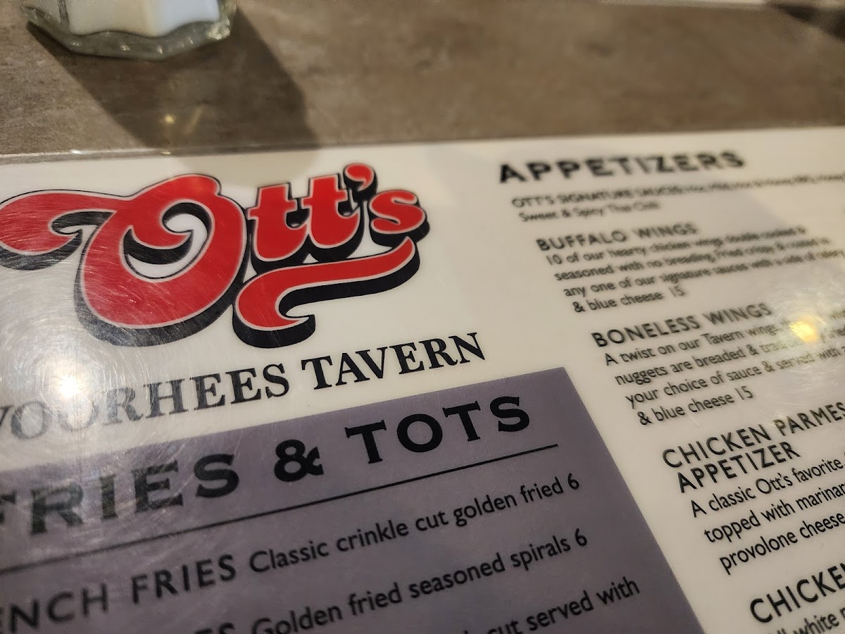 Ott's Voorhees Tavern Menu